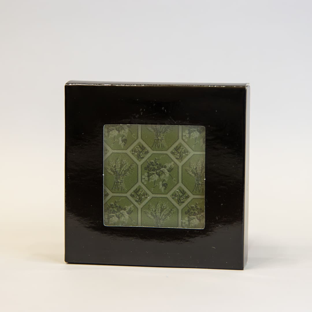 These coasters are printed with an image of the green carpet of the South Australian House of Assembly chamber. The carpet that furnishes the chamber features two types of produce that South Australia is best known for producing: wheat and a grape vine (for wine). Also featured is golden wattle – the official floral emblem of Australia. Set of 4, 90 x 90mm, glass coasters.